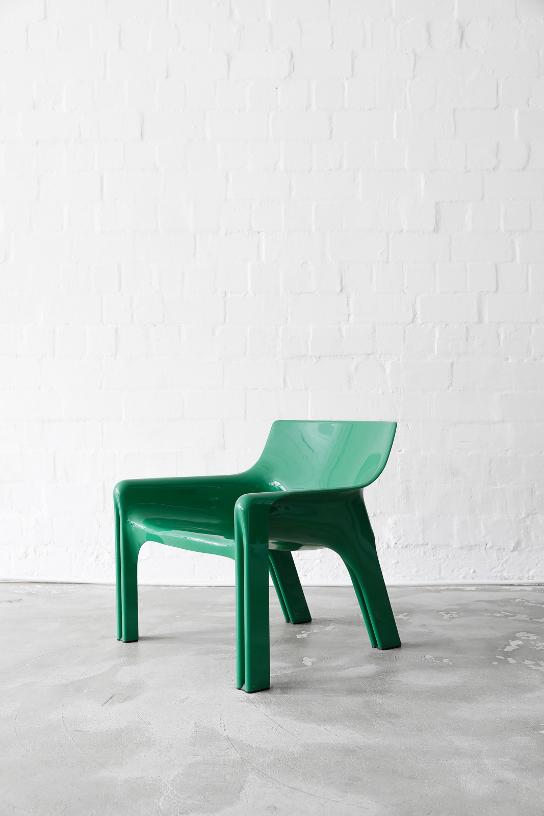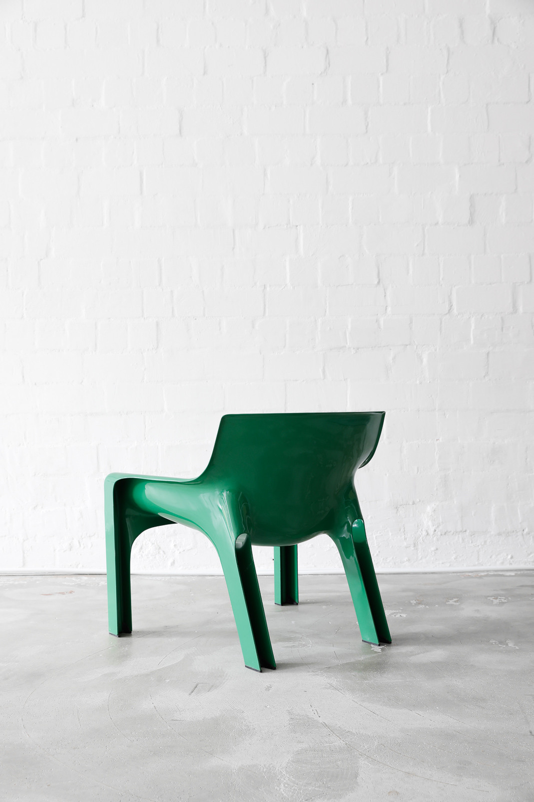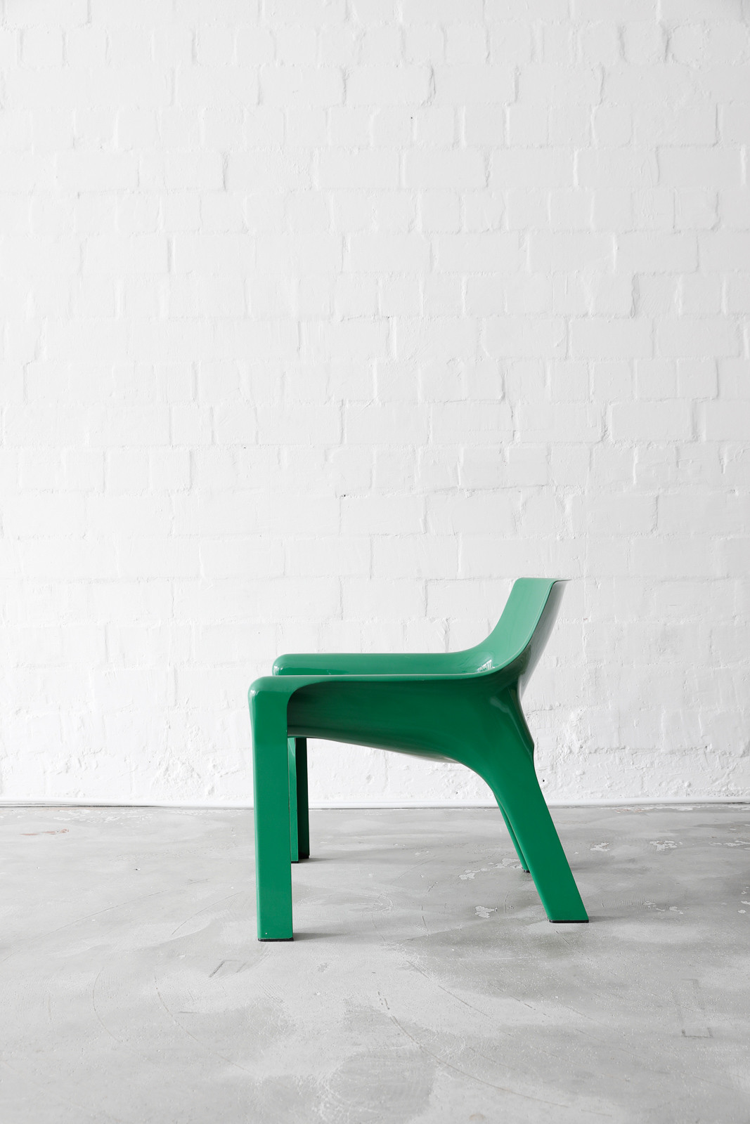 The green Artemide Vicario chair, designed by Vico Magistretti in the 1970s, combines timeless elegance with a refreshing pop of color. With its iconic design and vibrant hue, the chair adds a touch of sophistication and style to any space while providing comfortable seating.