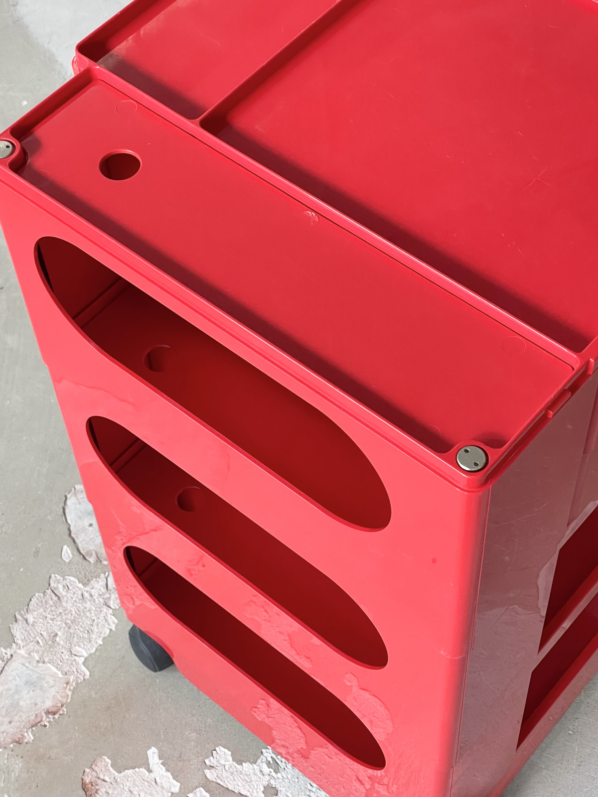 Boby Storage Trolley in red by Joe Colombo for Bieffeplast, 1970s. Perfect to stow away all the irritating papers, odds and ends.