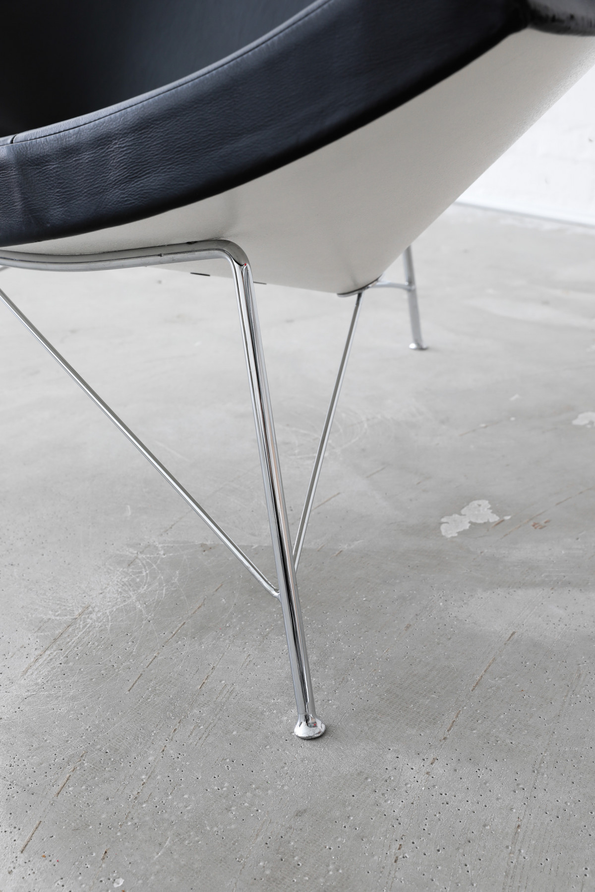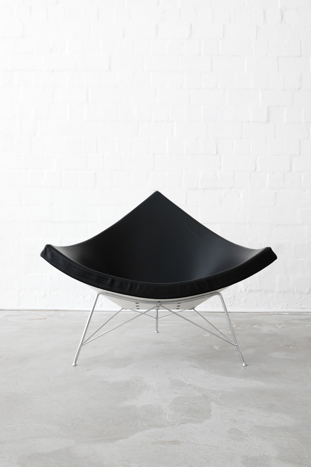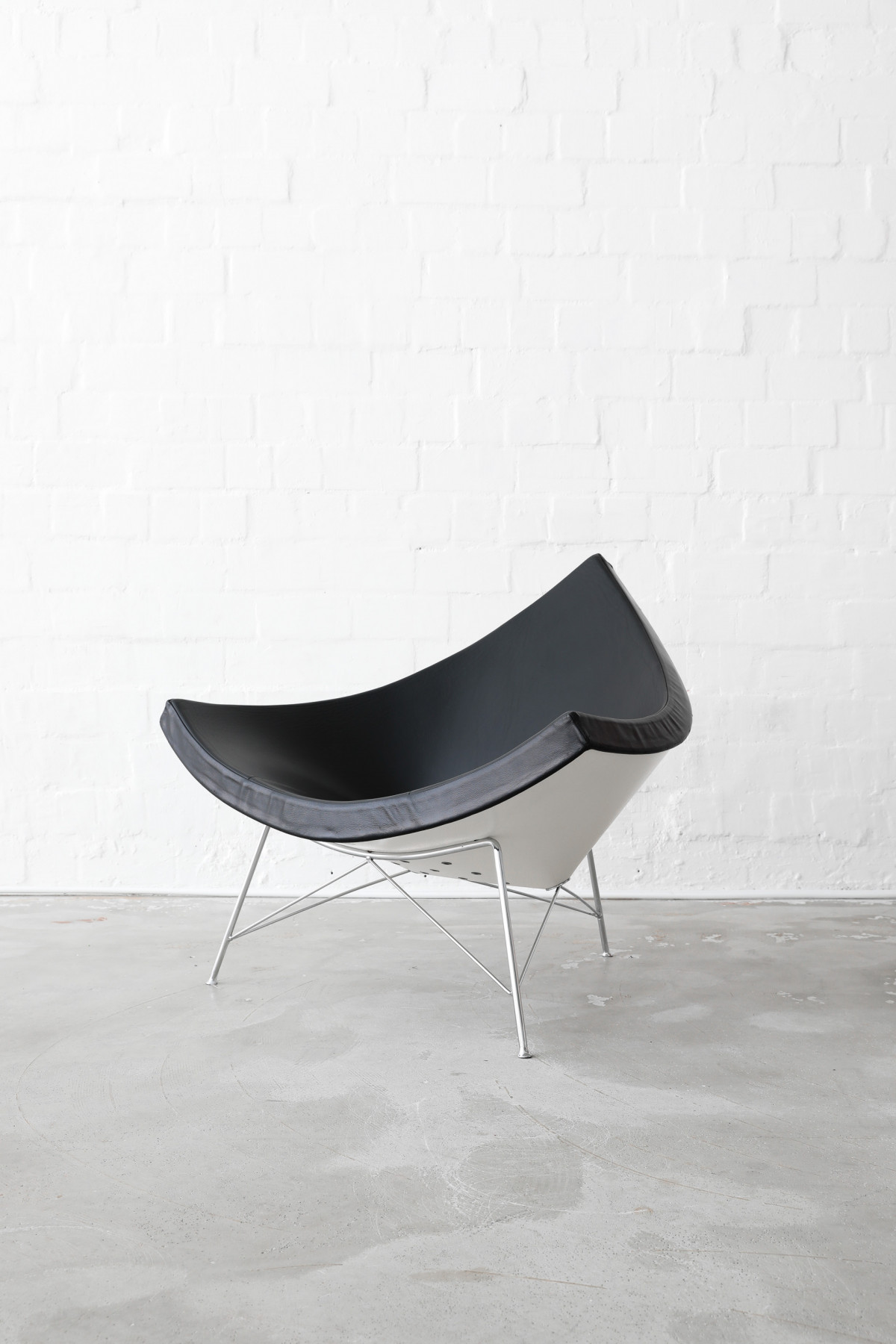 Iconic Coconut Chair designed by George Nelson in 1955. A timeless and modern piece characterized by it’s distinctive triangular shape resembling a coconut shell. This version was manufactured by Vitra in 1999 🥥 leather cushions and fiberglass shell.