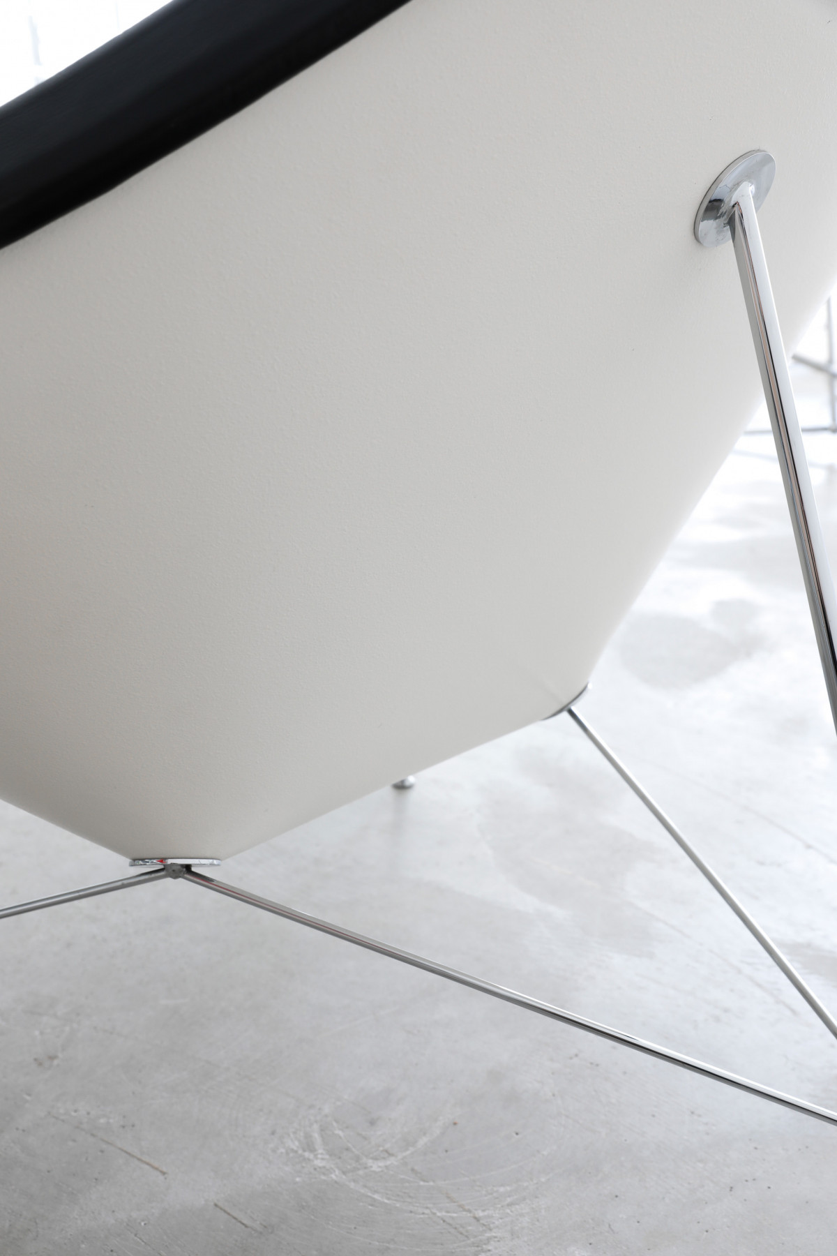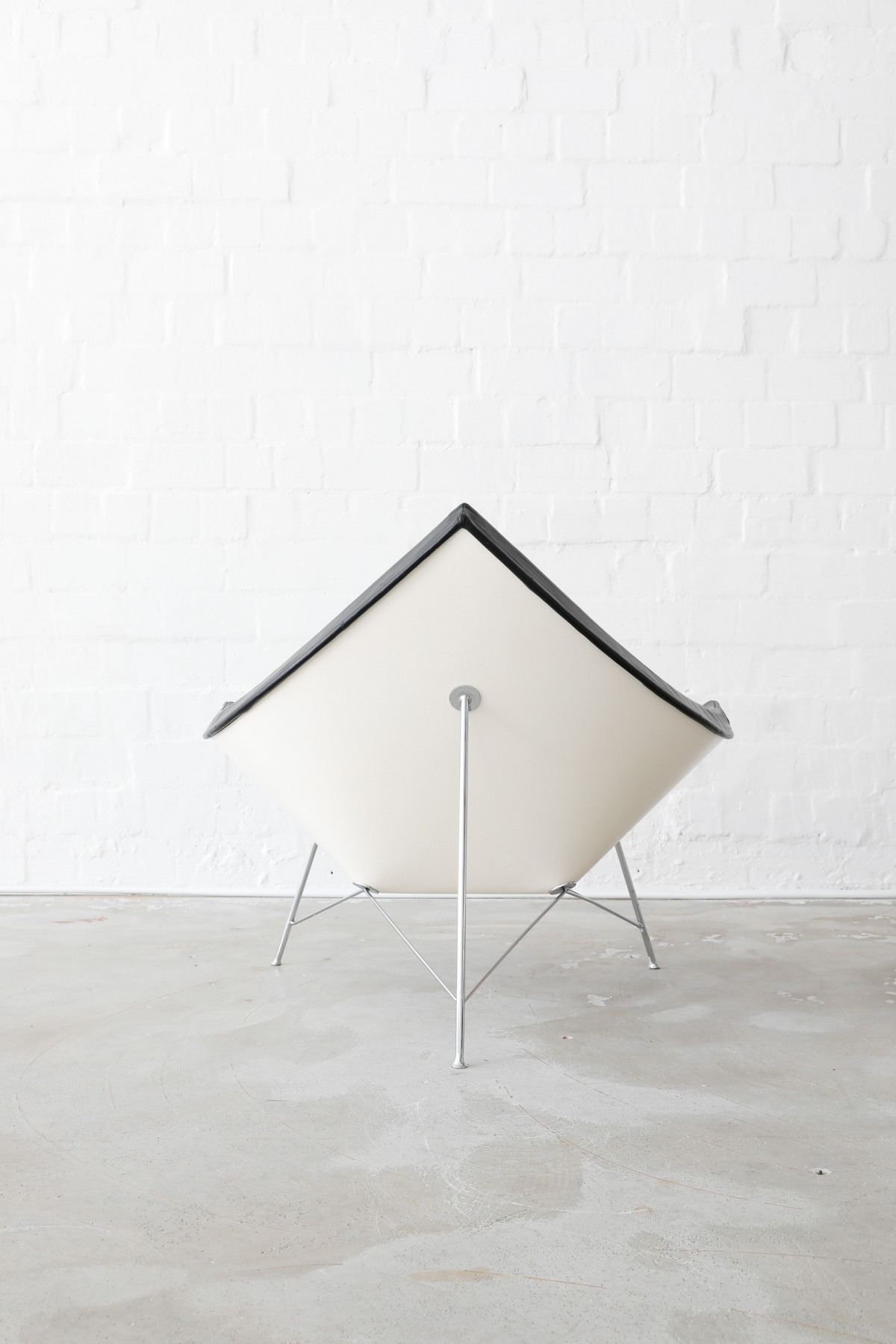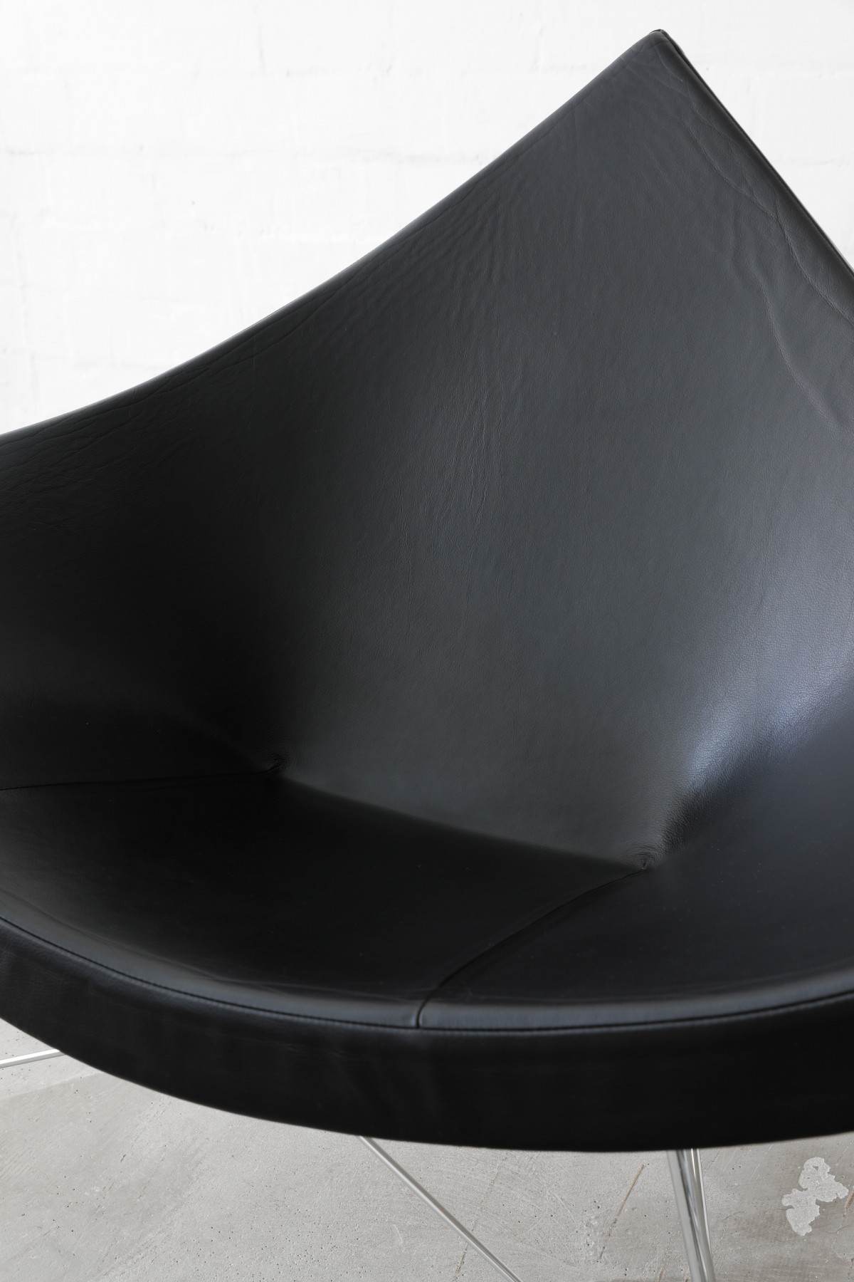 Iconic Coconut Chair designed by George Nelson in 1955. A timeless and modern piece characterized by it’s distinctive triangular shape resembling a coconut shell. This version was manufactured by Vitra in 1999 🥥 leather cushions and fiberglass shell.