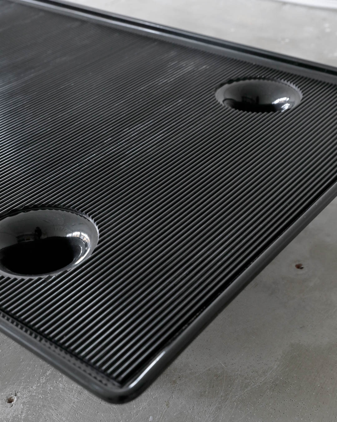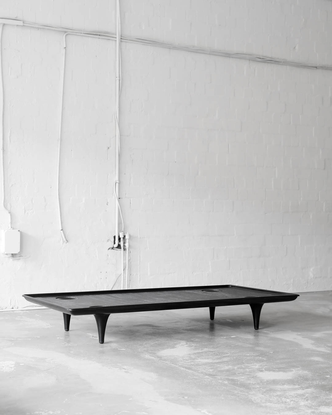 This stunning daybed was designed by Andreas Christen in the 1960s, crafted from a single piece of fiberglass-reinforced polyester with a sleek black finish.