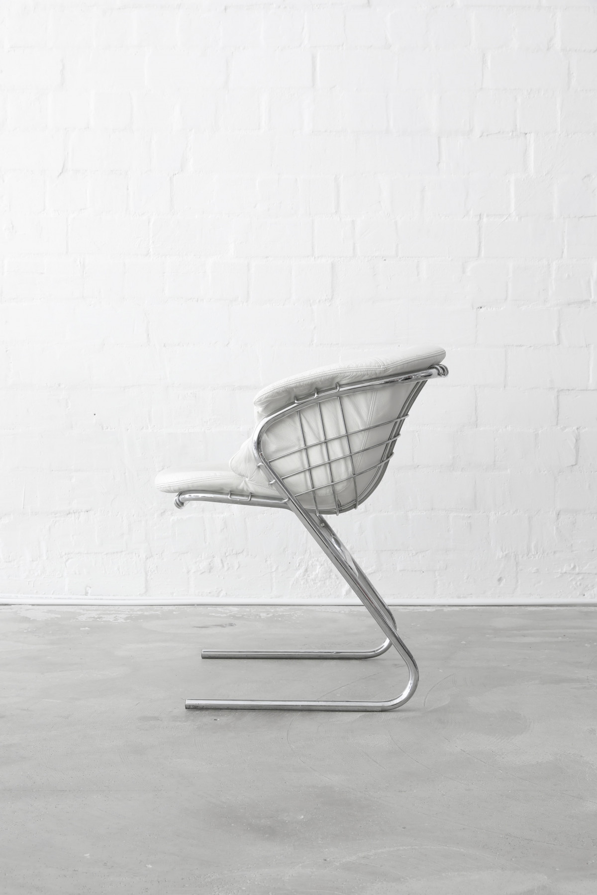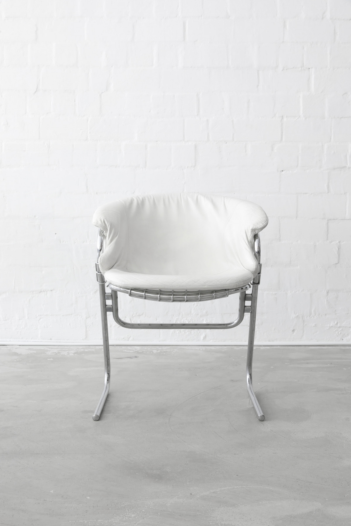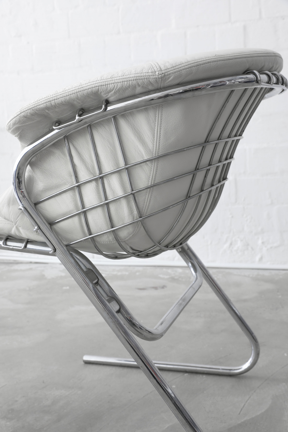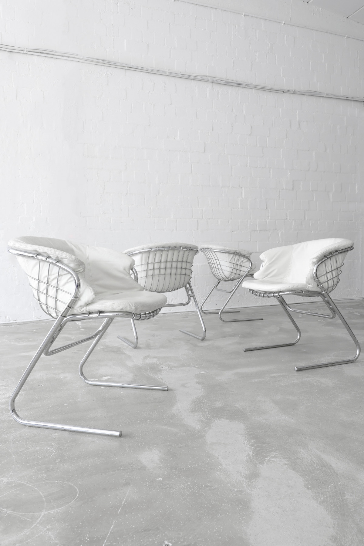 Set of four ‘Flynn’ dining chairs designed by Gastone Rinaldi, manufactured in Italy, 1970s. The chairs have a super comfy cushion made of white leather.
