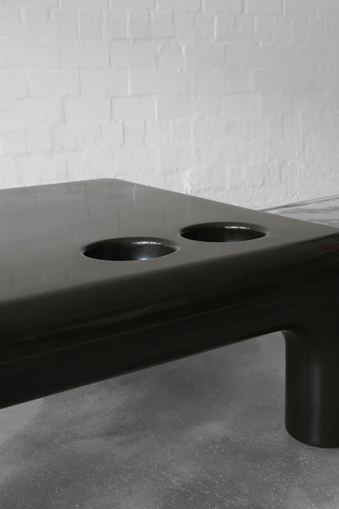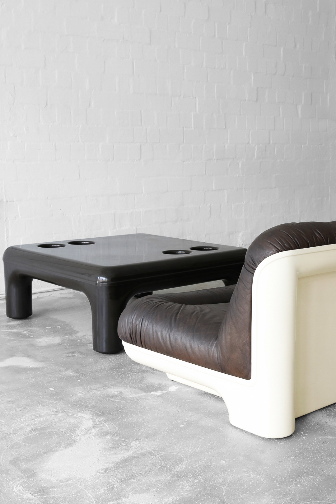 This is a very unique and super rare coffee table, designed and produced from one of our favourite designers Gerd Lange in the 1970s. The dark brown coffee table exist only in a number of 100 pieces and is produced of fiberglass reinforced polyester. In beautiful vintage condition.