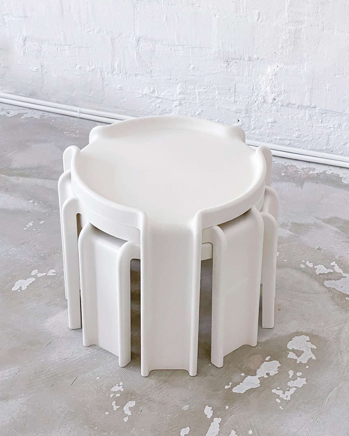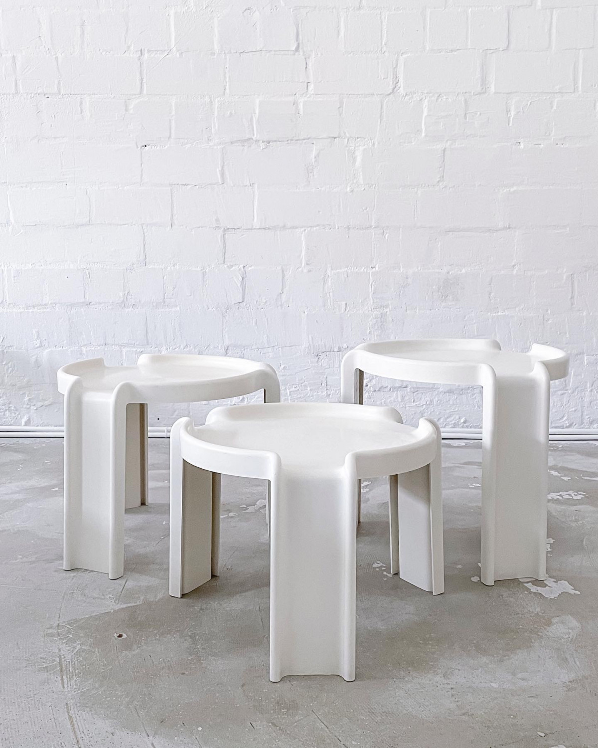 Off-white vintage Kartell stacking tables designed 1970 by Giotto Stoppino, set of 3. In very good vintage condition.