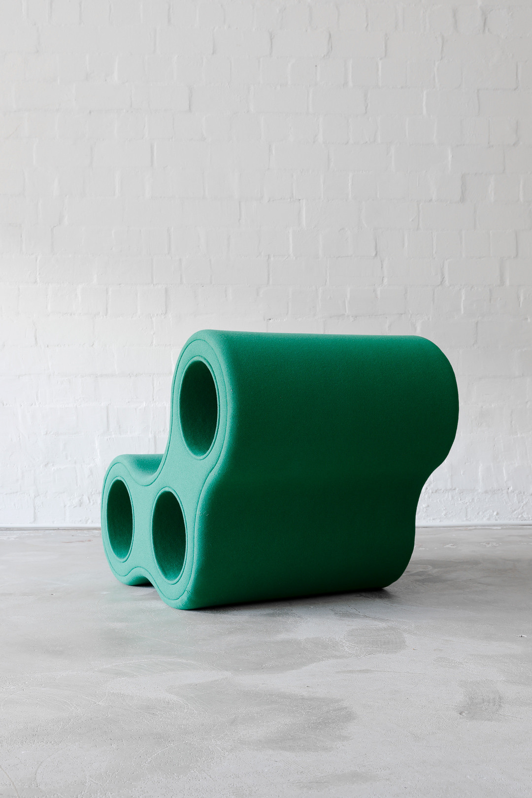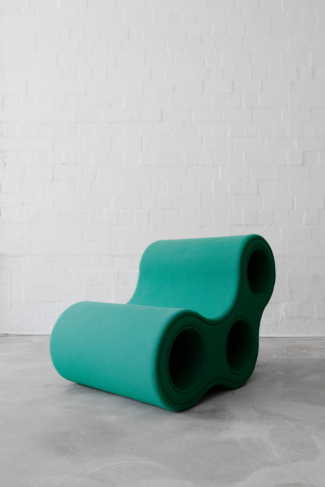 Designed by Leif Jørgensen for HAY in the 2000s, the green „Round One“ lounge chair adds a fun and playful touch of colour to any room. The design is upholstered in the finest Kvadrat Divina 3 fabric / 100% wool