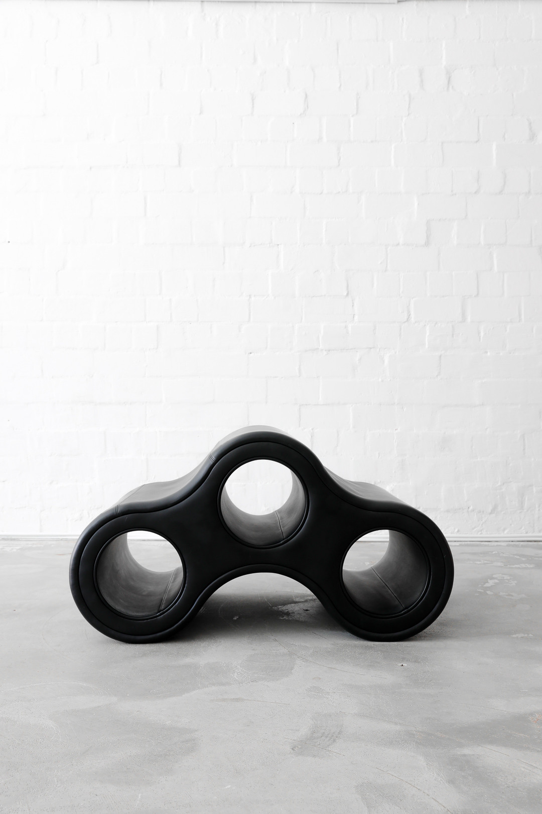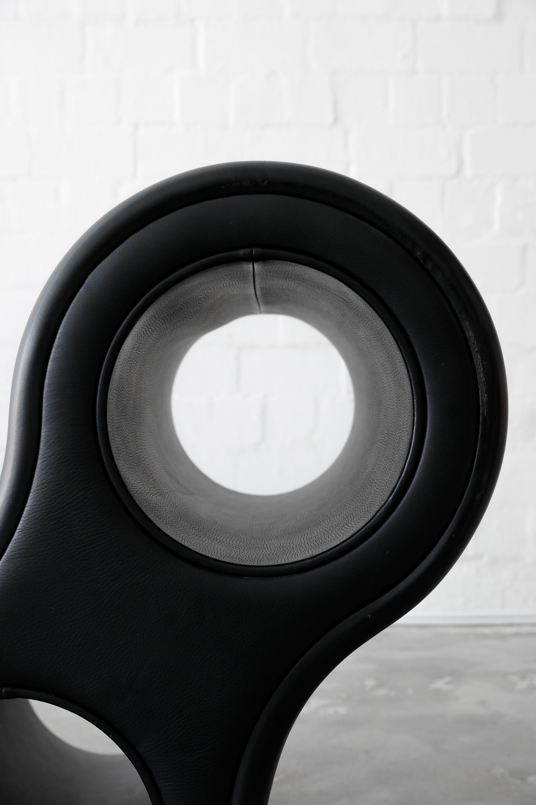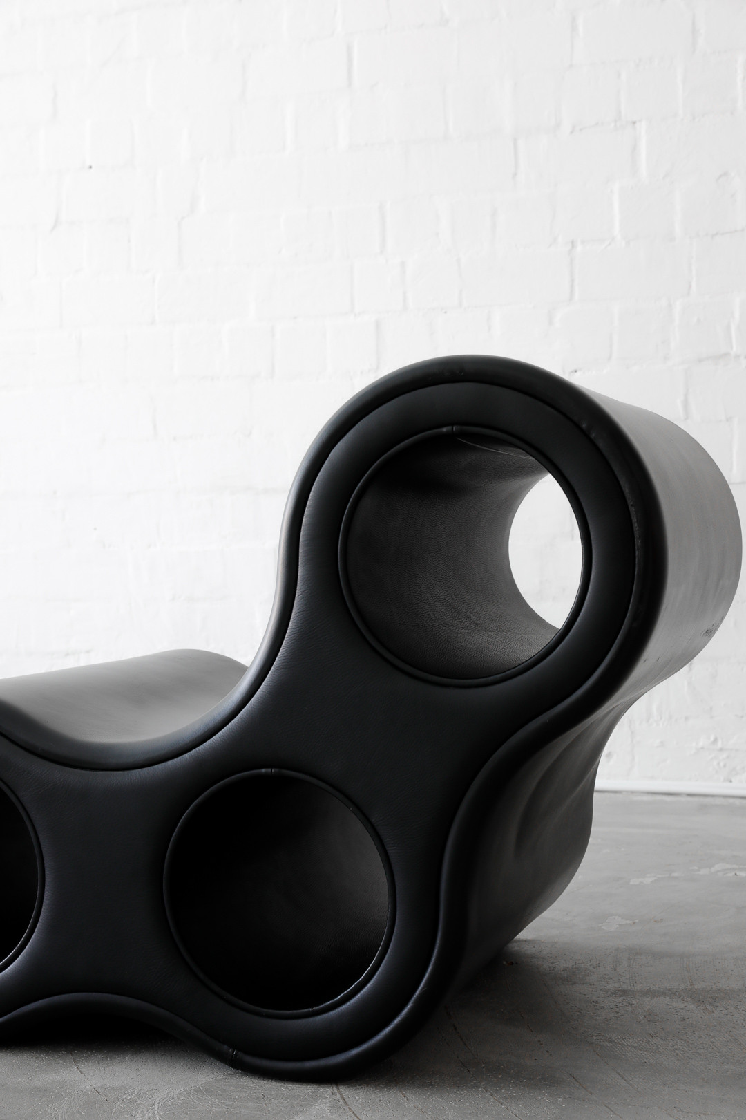Designed by Leif Jørgensen for HAY in the 2000s, the rare Round One lounge chair adds a fun and playful touch to any room. The design is upholstered in thick black leather.