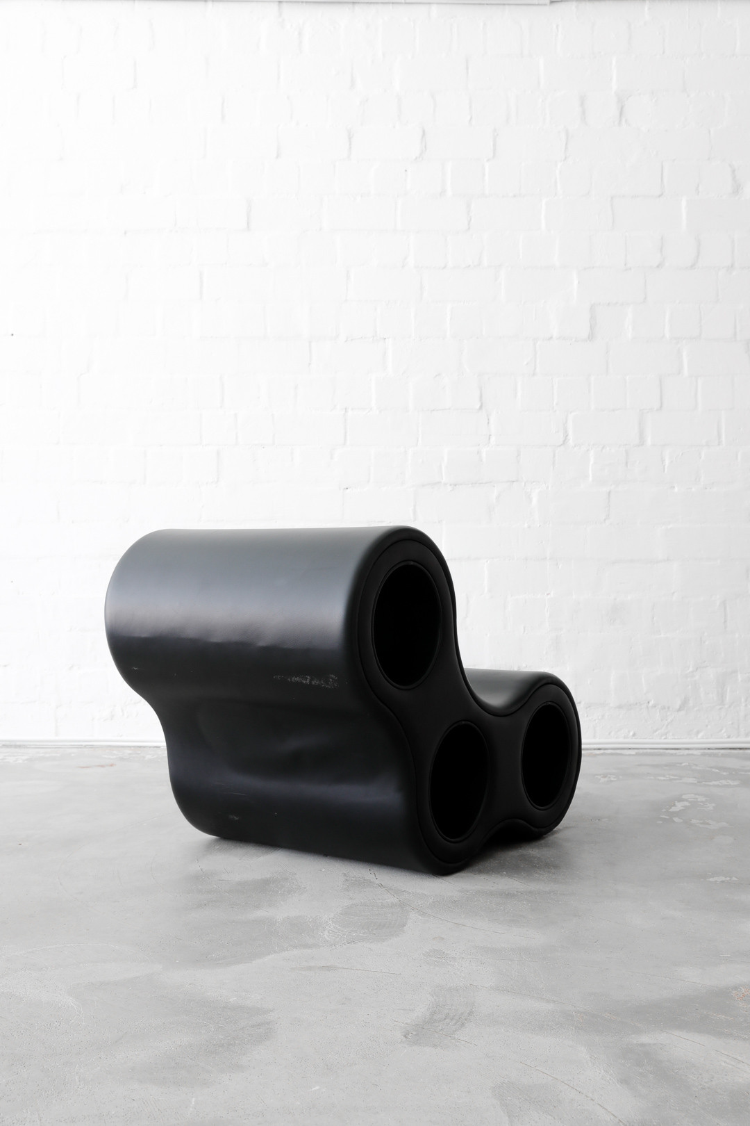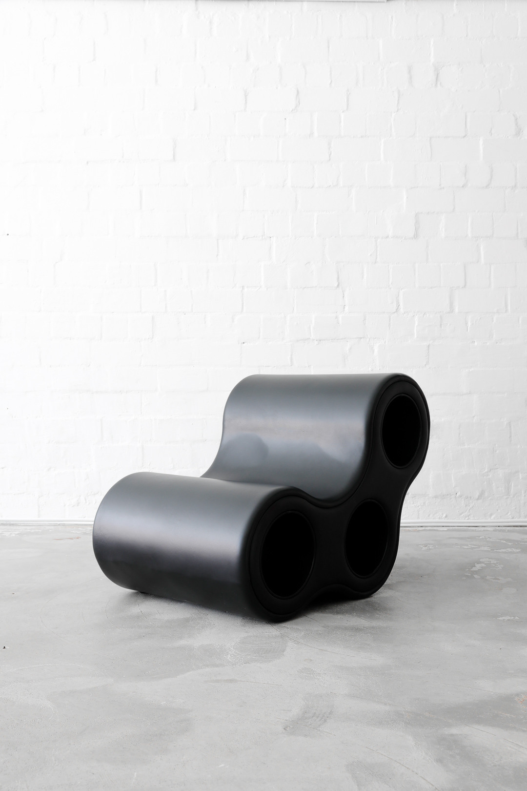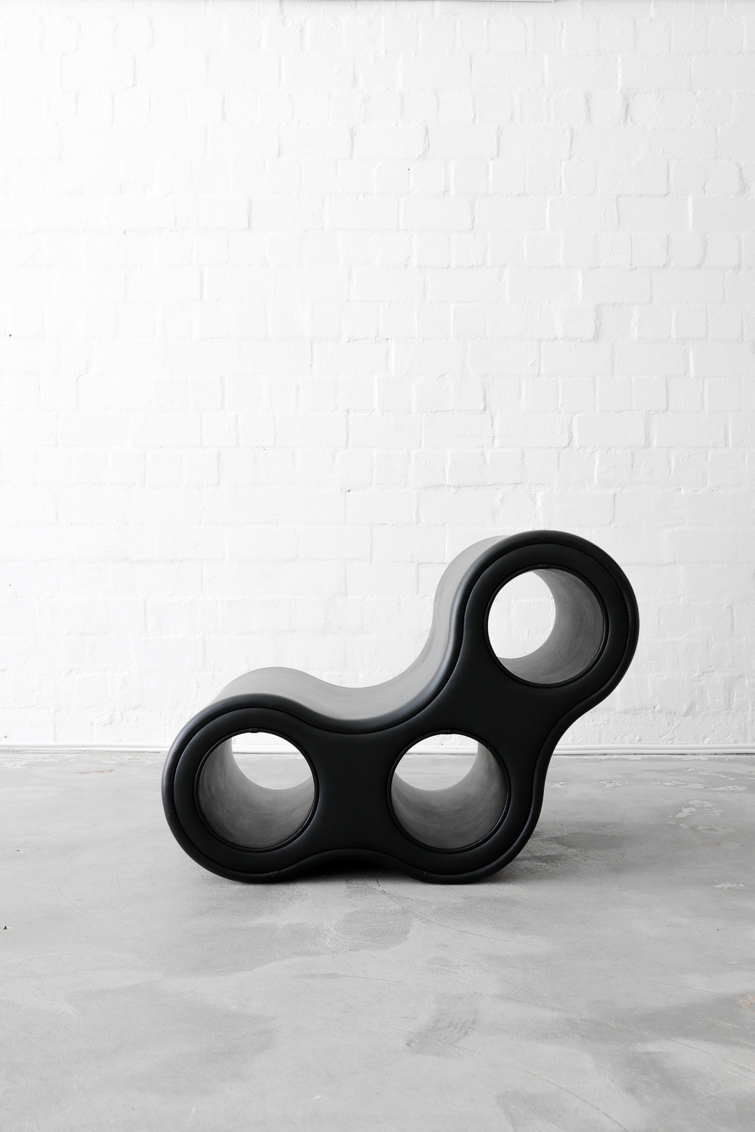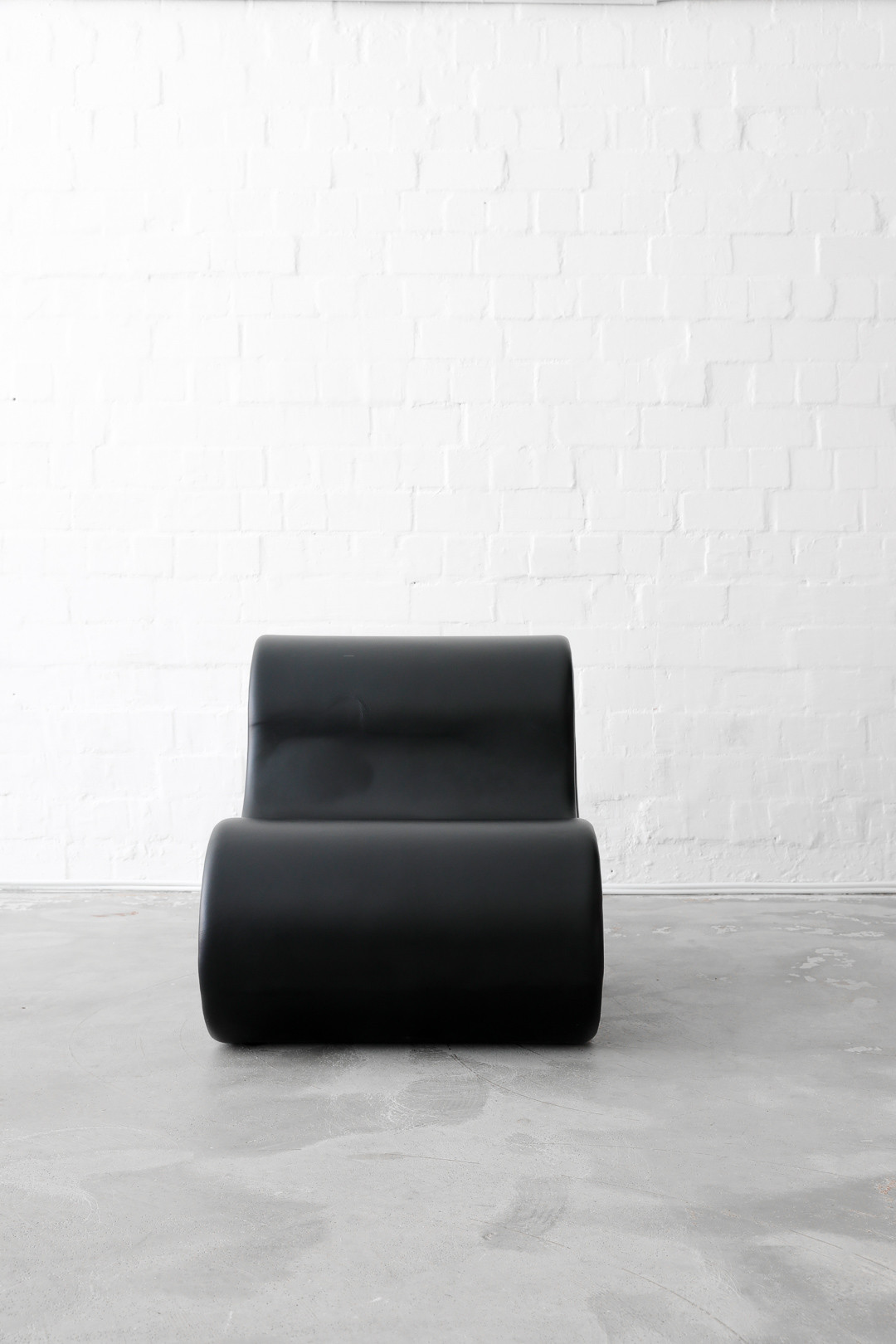 Designed by Leif Jørgensen for HAY in the 2000s, the rare Round One lounge chair adds a fun and playful touch to any room. The design is upholstered in thick black leather.