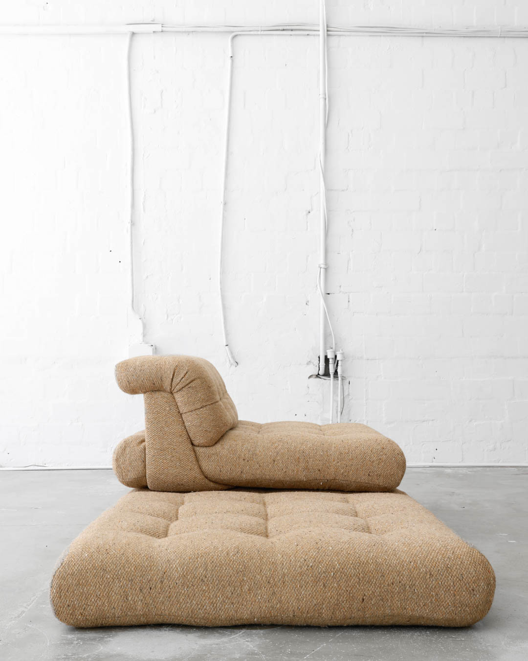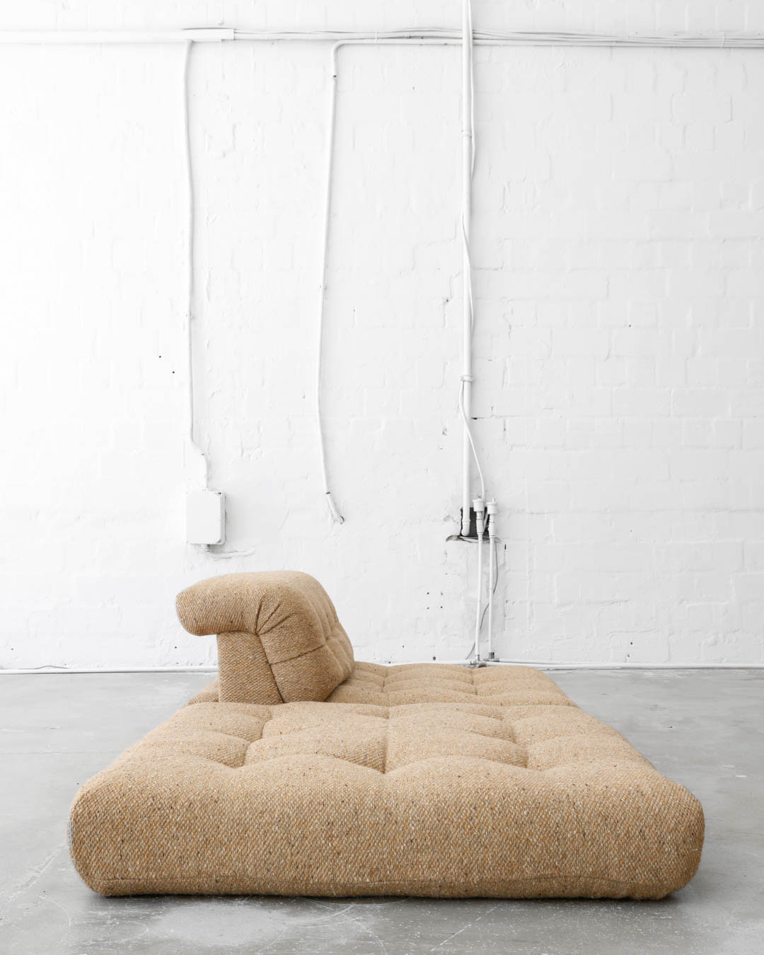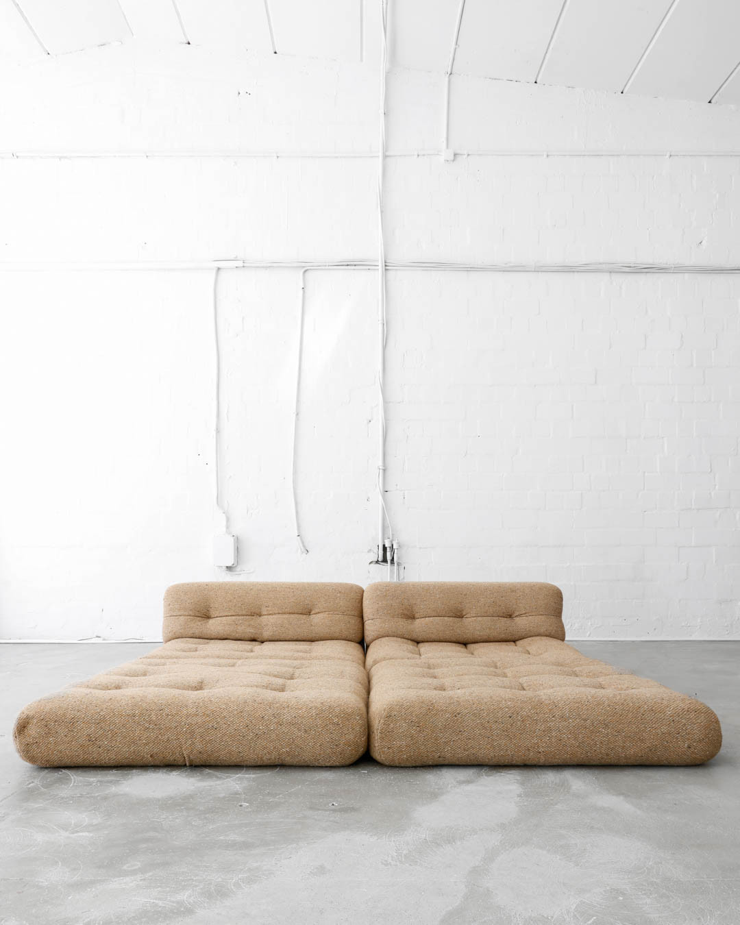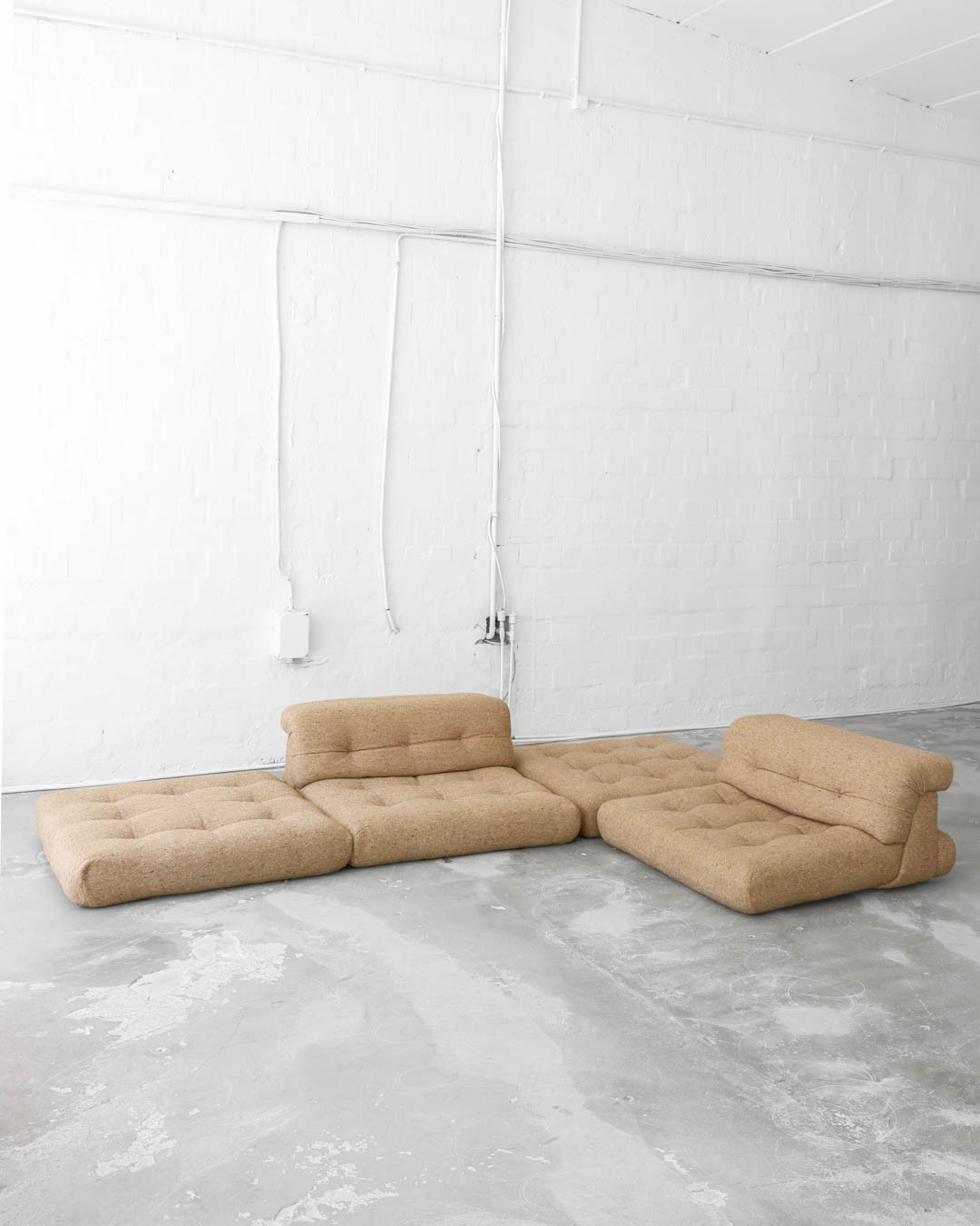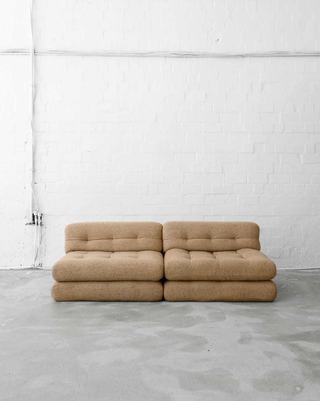 First Edition of the legendary modular Mah Jong sofa, designed in the 1970s by Hans Hopfer for Roche Bobois, France. A true gem, this piece offers a unique opportunity to create the perfect seating constellation for any space. Upholstered in thick wool fabric and in very nice vintage condition.