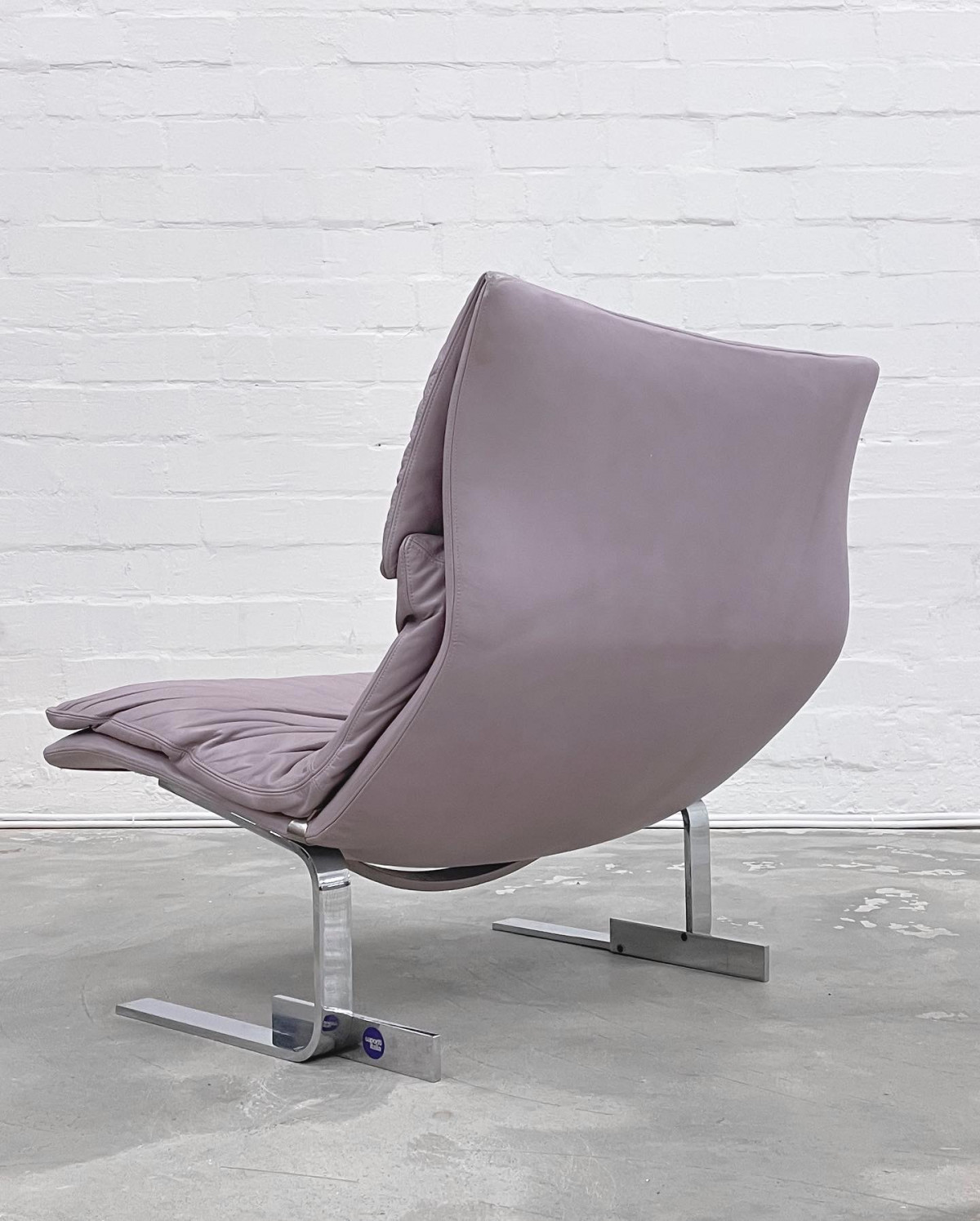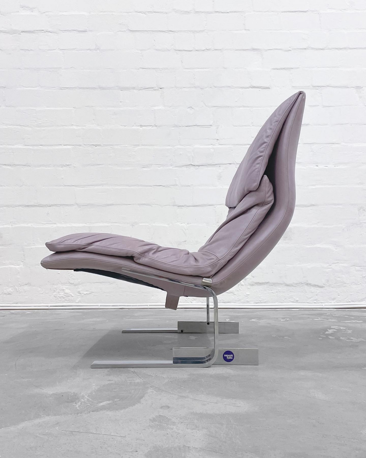 Postmodern Wave Lounge Chair "Onda" by Giovanni Offredi for Saporiti Italia. Lilac metallic leather with chromed frame. In beautiful vintage condition.
