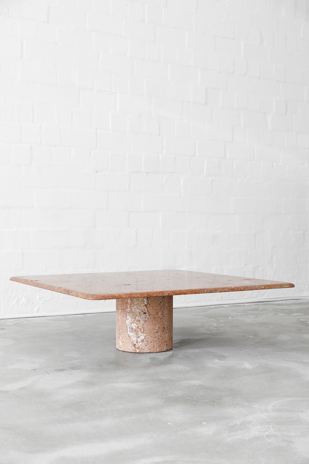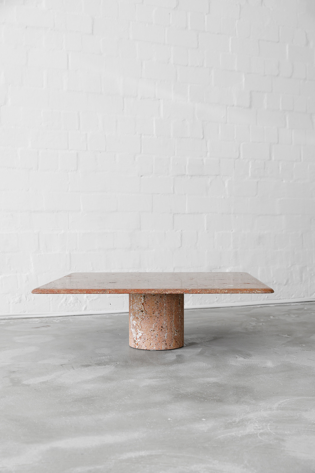 The rare red travertine coffee table designed by Angelo Mangiarotti and produced by UP&UP is a stunning piece of furniture that combines elegance with functionality. It adds a touch of luxury to any living space, while it’s minimalist design reflects Angelo Mangiarotti's signature style.