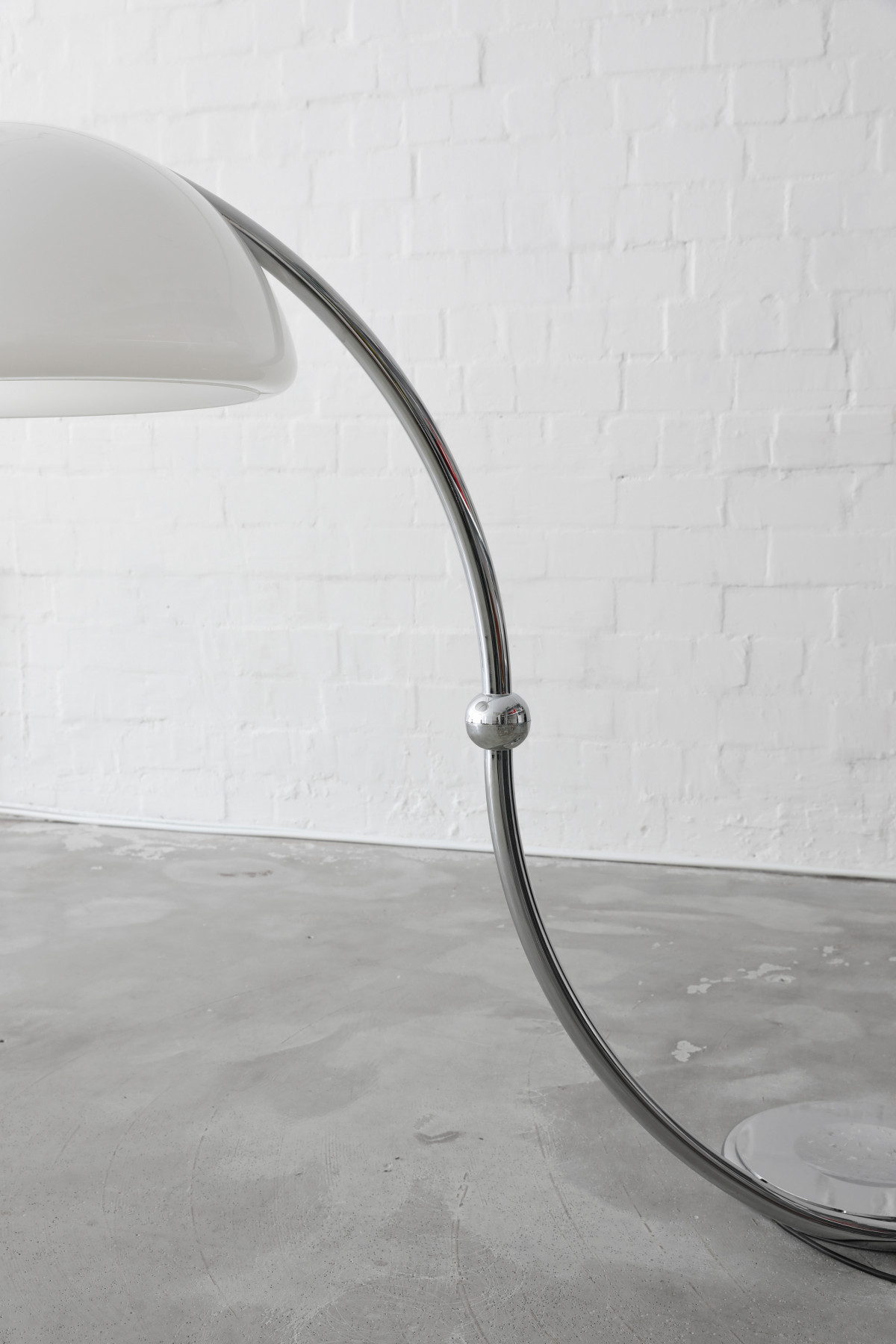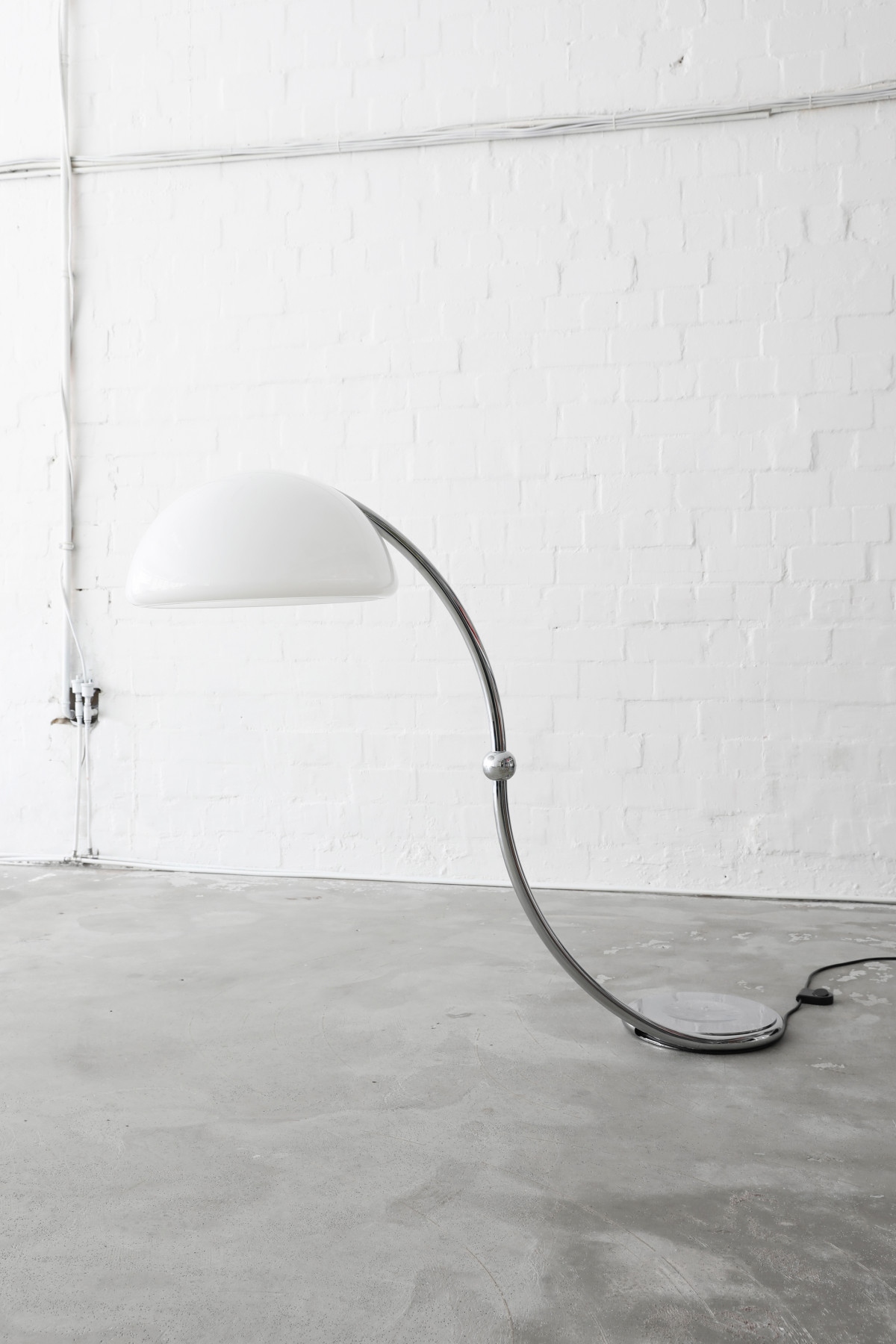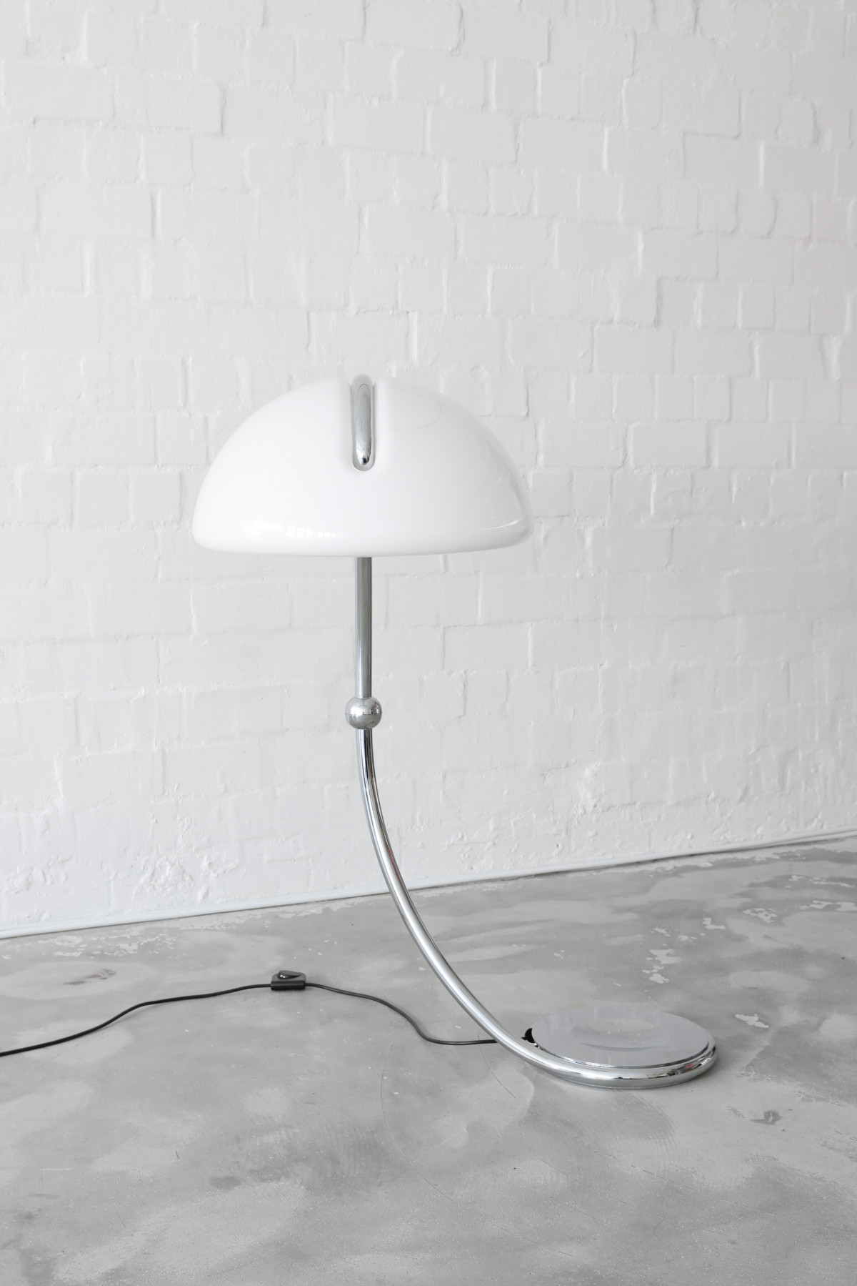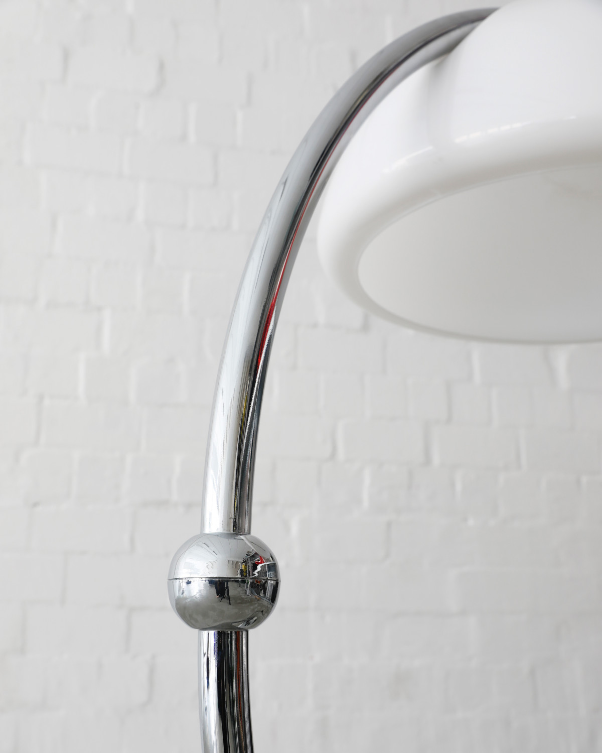 Freshly chromed Serpente floor lamp by Elio Martinelli for Martinelli Luce, Italy 1965. The chromed model was the first edition of the Serpente series. We really adore this design and the possibility to turn the lamp 360°.