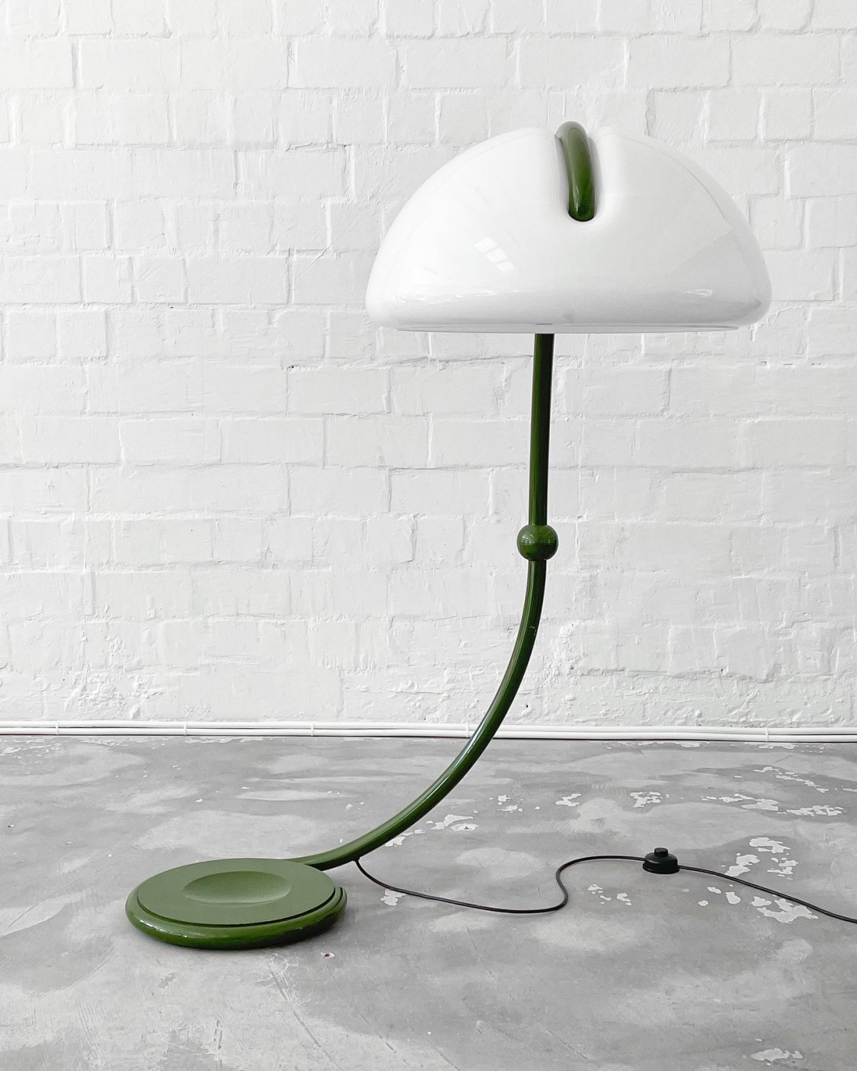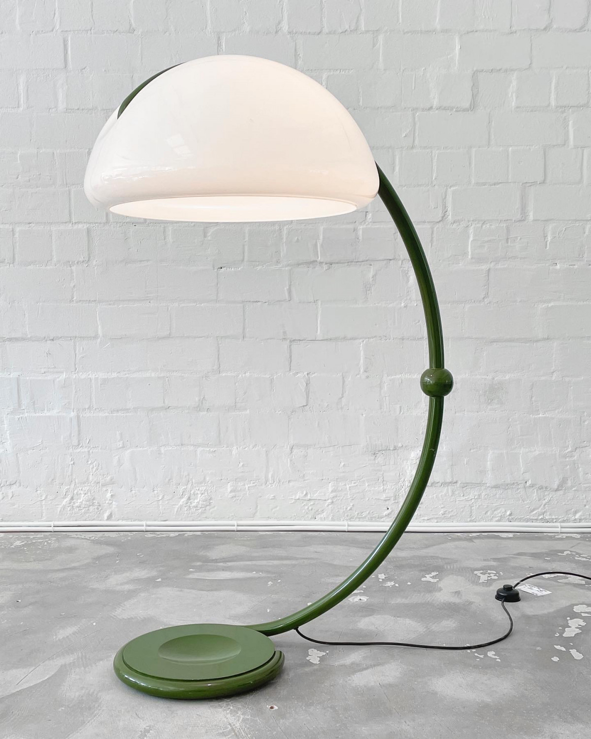 Italian space age Serpente floor lamp by Elio Martinelli for Martinelli Luce, 1970s. In a super rare green version. The swivel lampshade can be rotated around the axis and looks amazing in every position.
