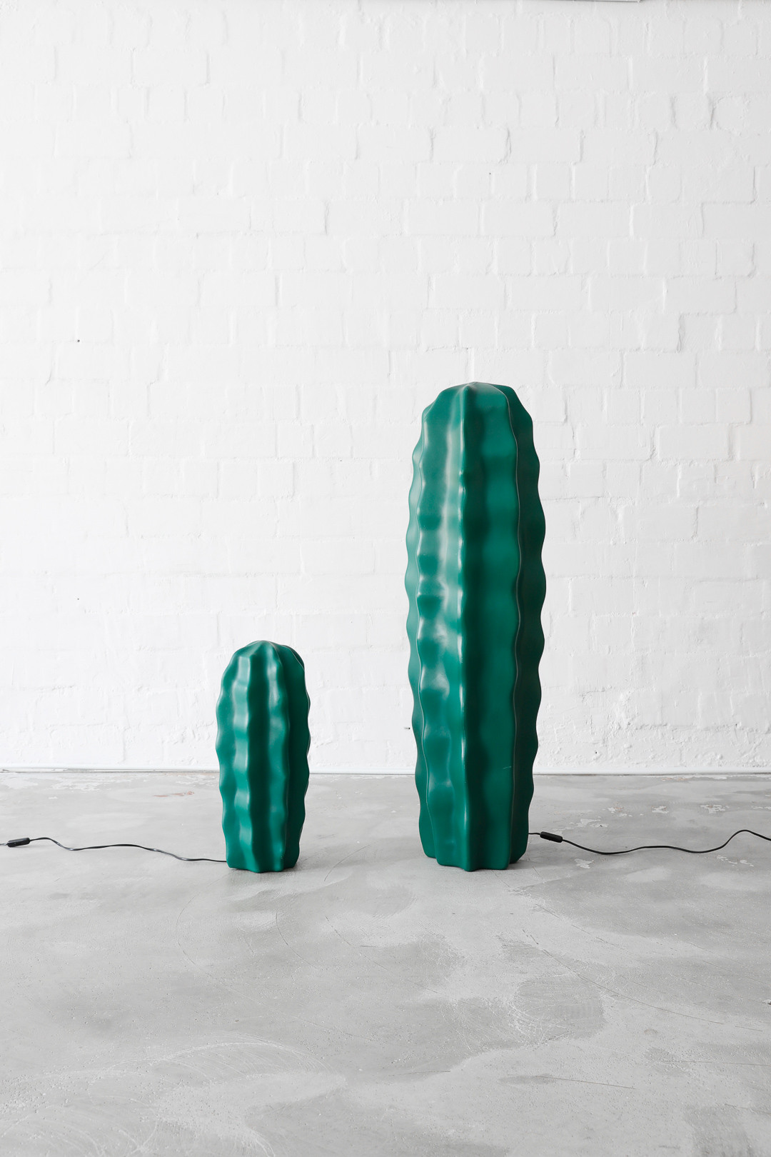 Postmodern Flötotto SUCU cactus lamps designed by Art Nowo, Germany 1990s. These unique plastic pieces are characterized by their rare green color and playful design.