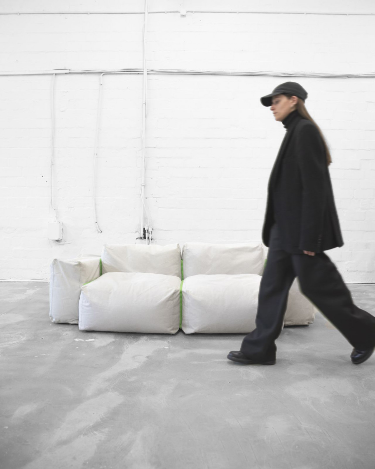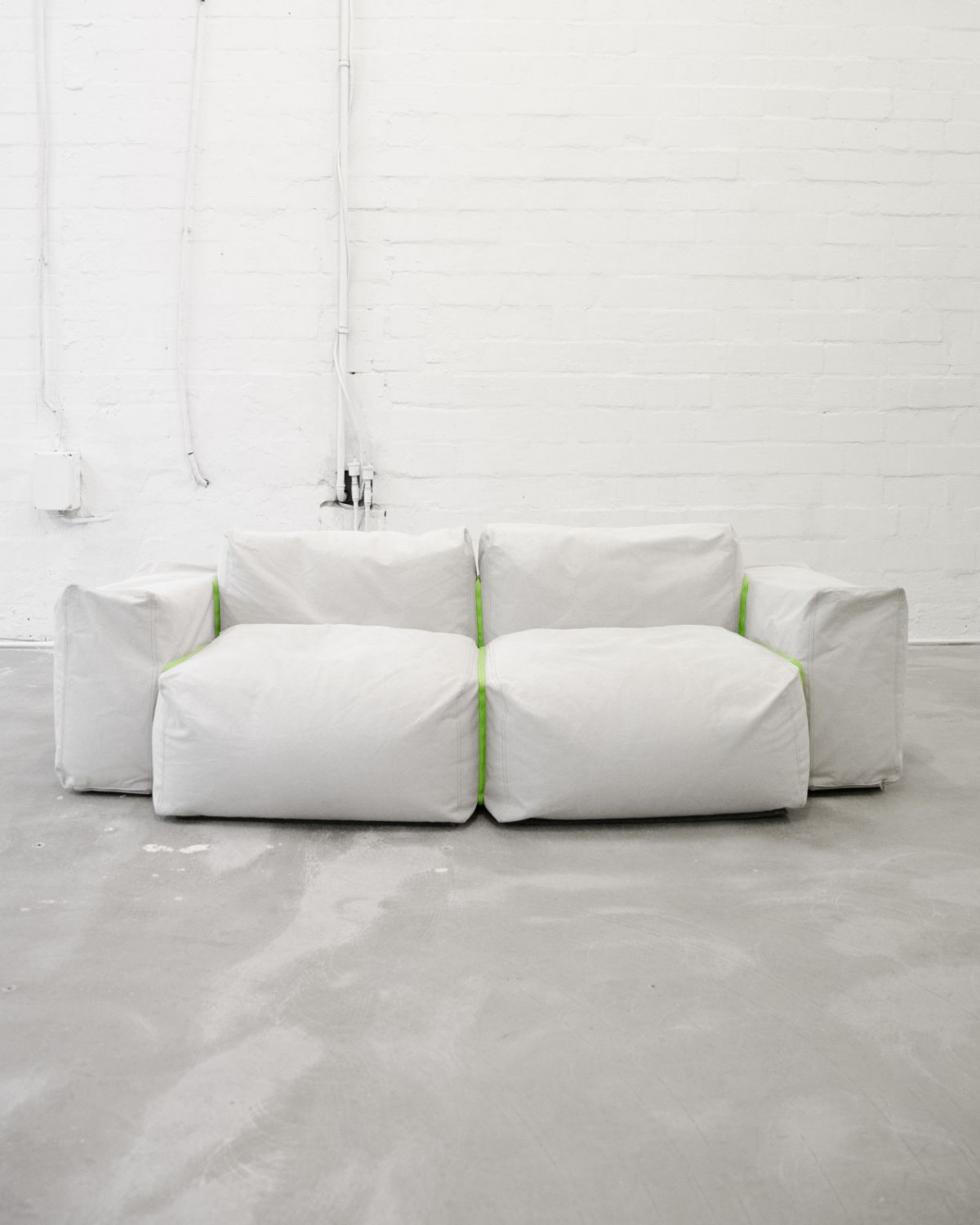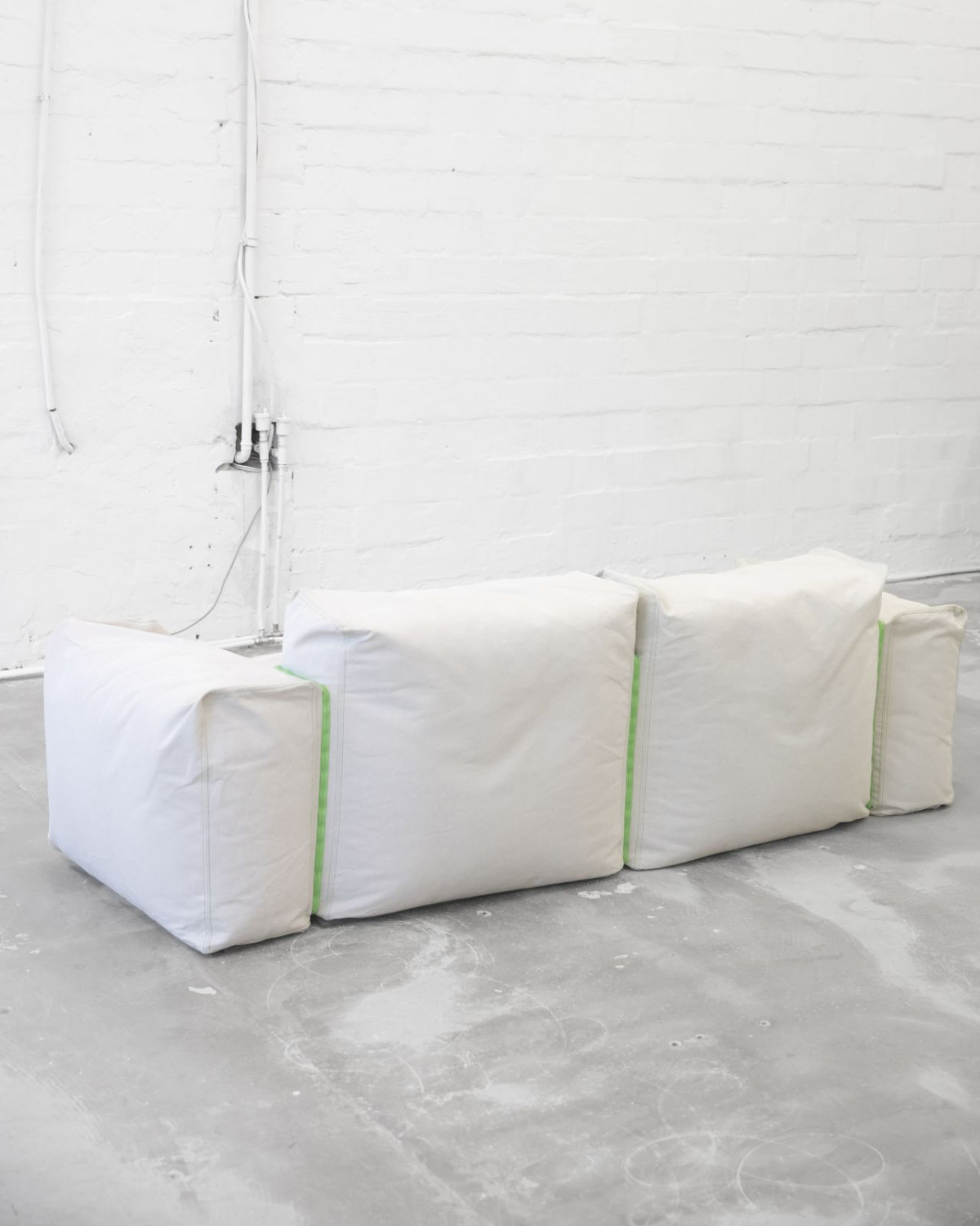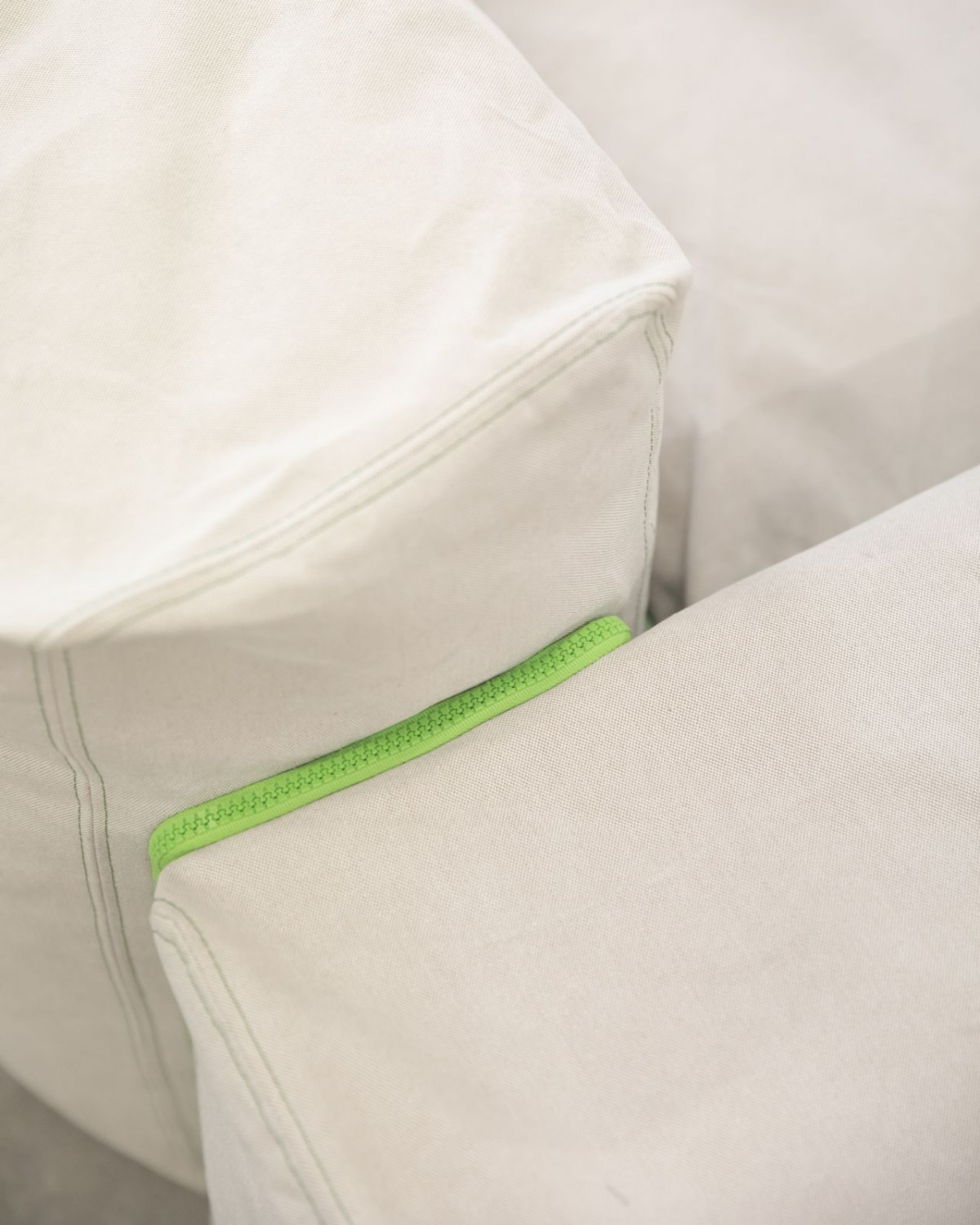 Stunning Jasper Morrison zipper sofa for Cappellini Italy, 2004. Six light beige canvas elements with green zippers that can be joined together, in various configurations or used independently.