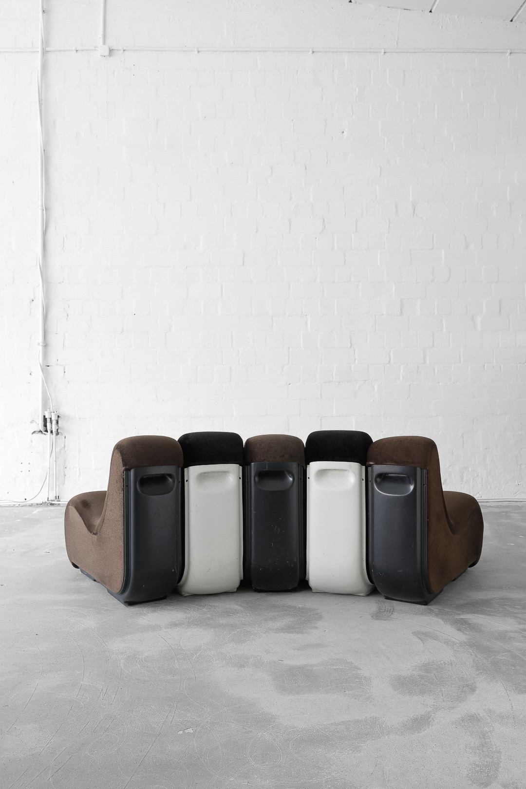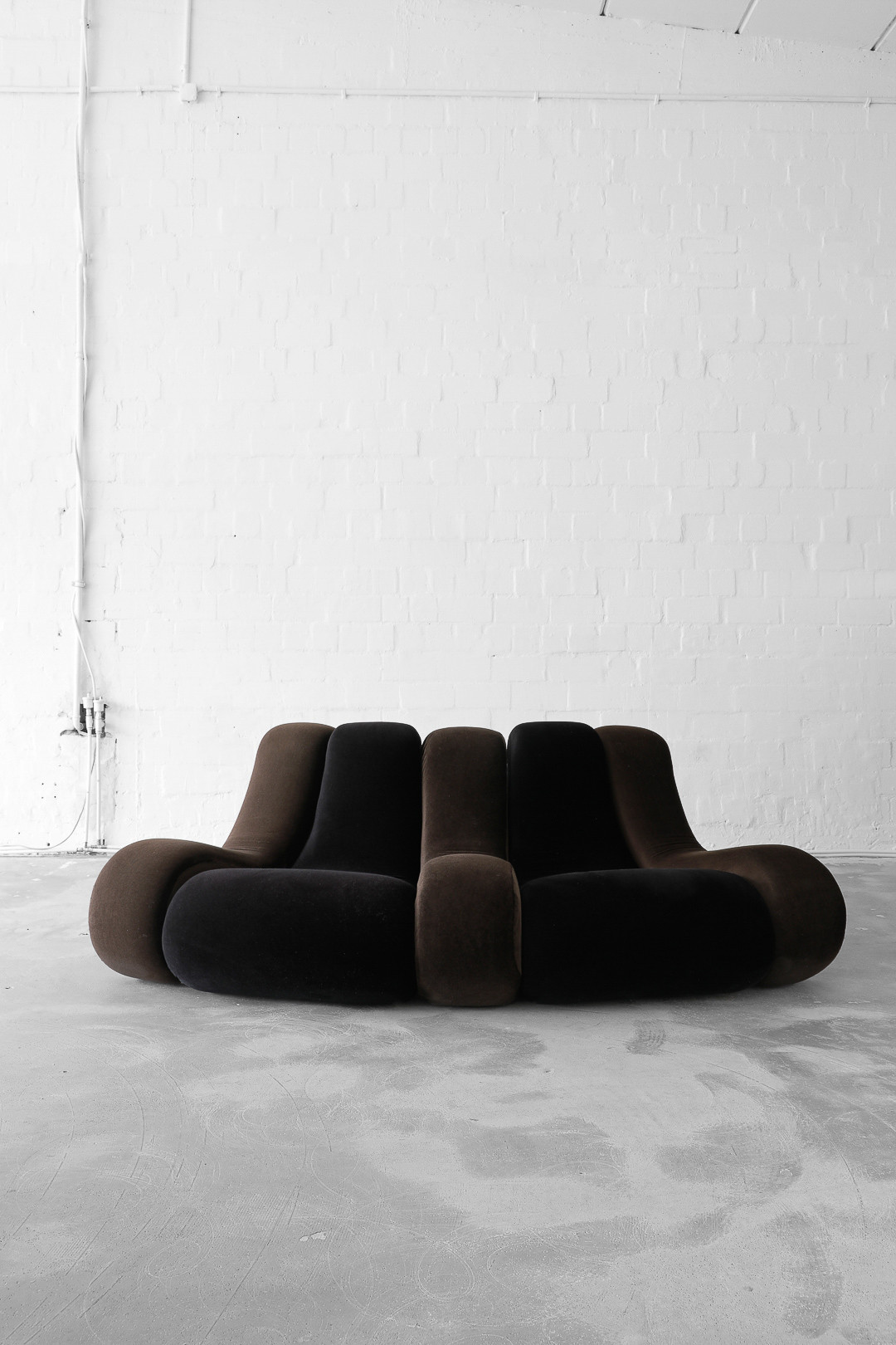 Amazing modular sofa Vario Pillo by Burkhard Vogtherr for Rosenthal Studio Line, 1970s.🐛Original dark brown and blue velvet upholstery with black and white fiberglass frame.